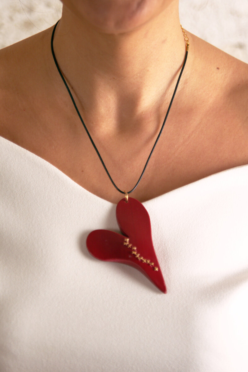 pendente ha la forma di un cuore,