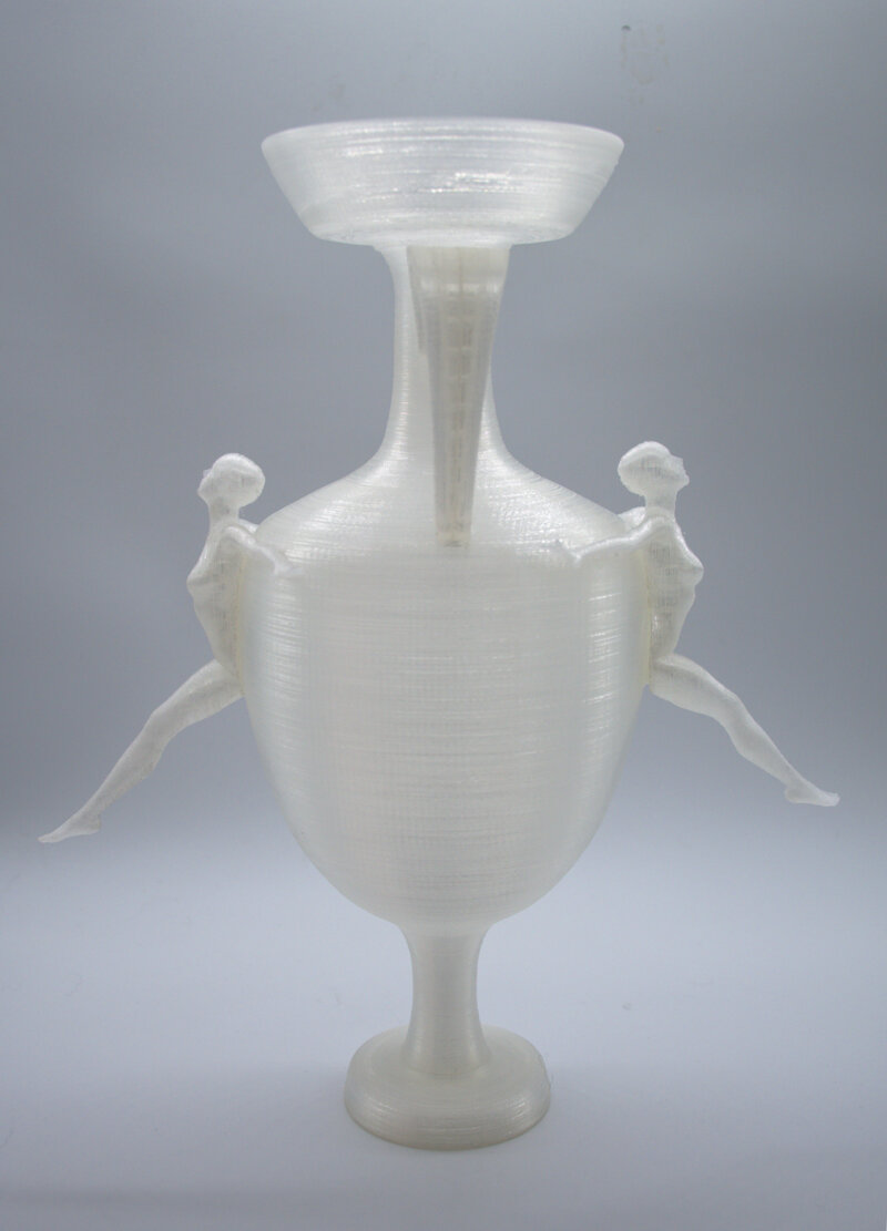 vaso, emergono due ballerine danzanti, le loro figure scolpite con