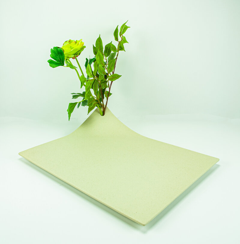 forma quadrata piatta si curva verso l’alto in un angolo, creando